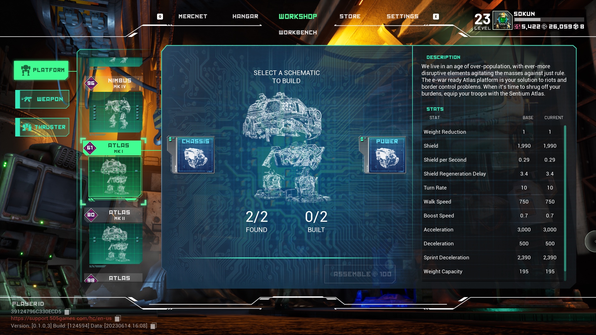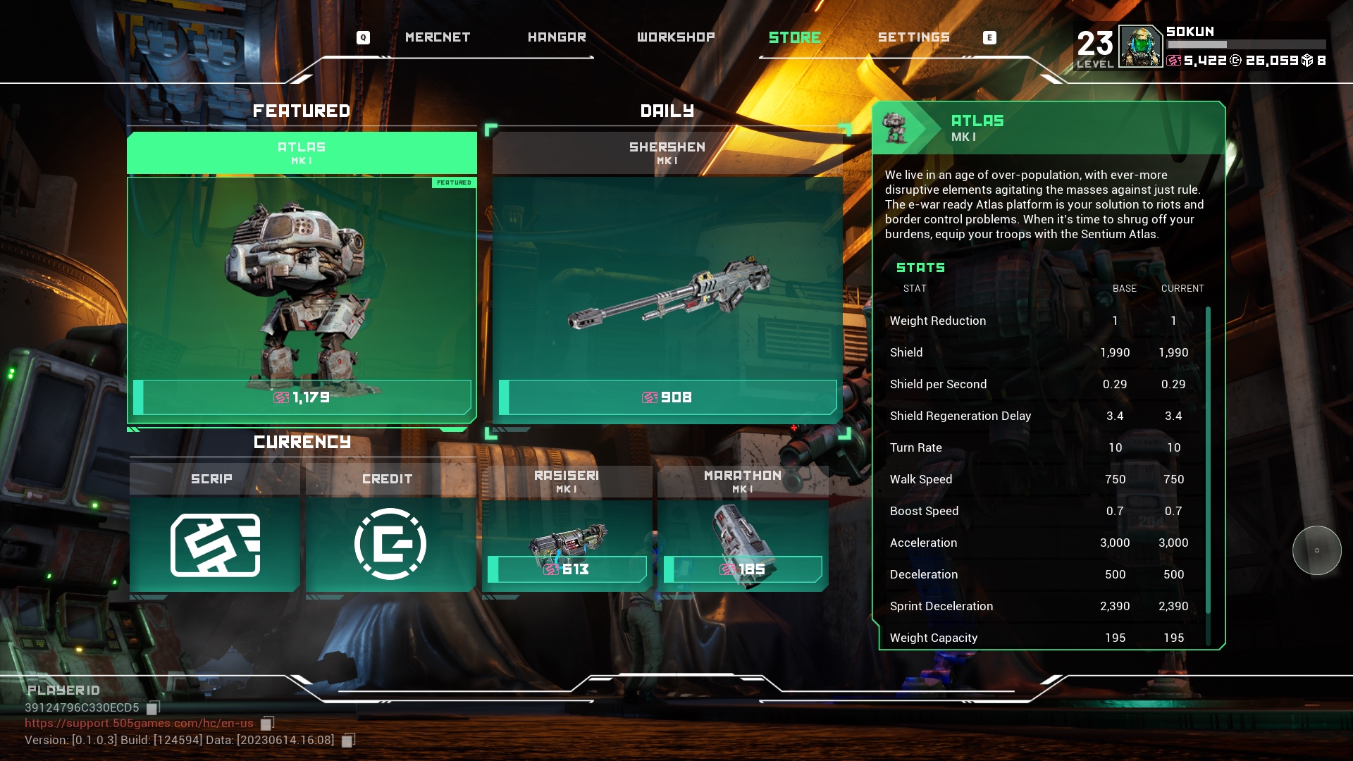 Take for example our resident mech thicc boi, the Atlas that is in our store rotation. That mech’s blueprint is unlocked to all players who hit Pilot Level 7. Once a blueprint is unlocked, a player will need to farm schematics and use materials found in Patrol Mode to eventually craft their mech. The store acts as a way to shortcut getting an item quicker with no other advantage beyond avoiding the grind since both methods of obtaining the item will yield the same result.