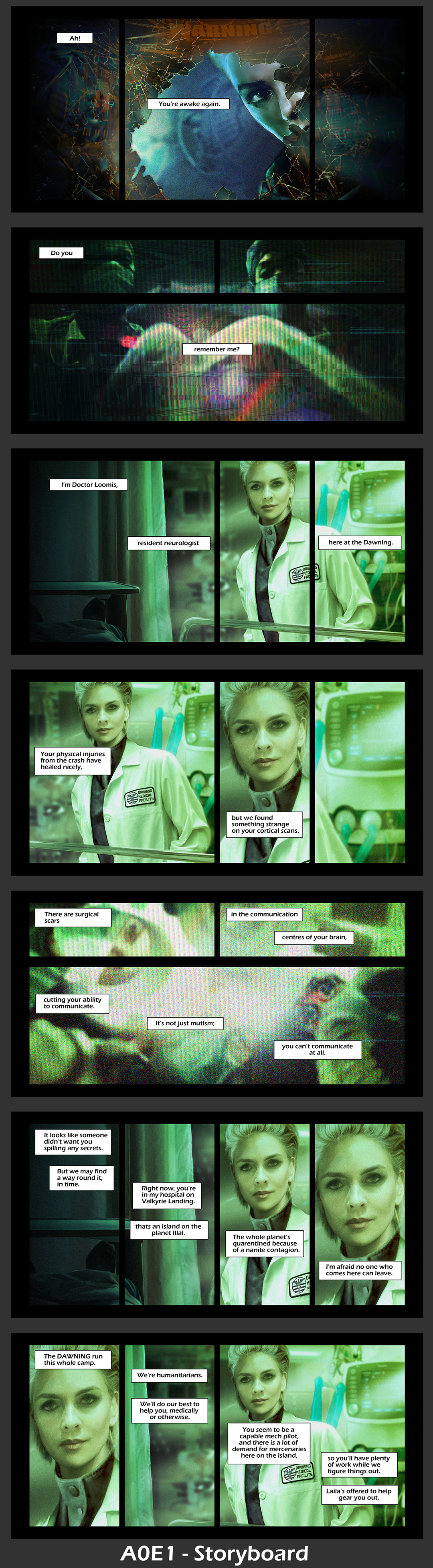Last week we briefly addressed AI’s influence in our in-game cutscenes and unfortunately, it only served to fan the flames of distrust since there were obvious signs that AI was used in the final images. We were looking at the conversation from a “who made the artwork” perspective, which was produced by multiple artists on our team instead of focusing on what the final image looked like. For that, we take the blame and want to confirm that yes, this cutscene will definitely be updated in the future. Meanwhile, we want to share the original Dr. Loomis storyboard character concept as well as the original A0E1 cutscenes that were in the game before going into Early Access.